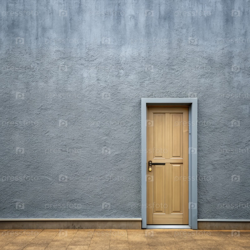 Одна деревянная дверь в стене серого дома генерирует ИИ