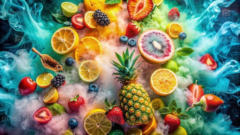 Взрыв тропических фруктов в дыме