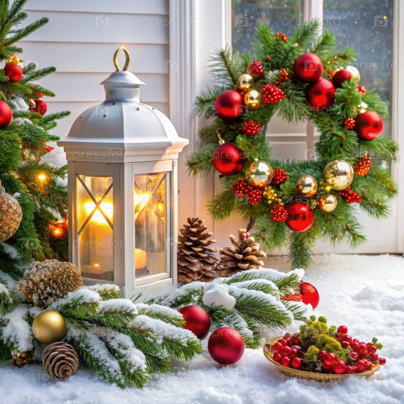 Праздничные рождественские украшения украшают белый передний факел