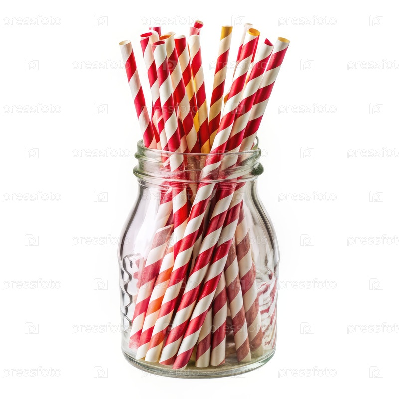 Красно-белые полосатые бумажные соломинки в стеклянной бутылке