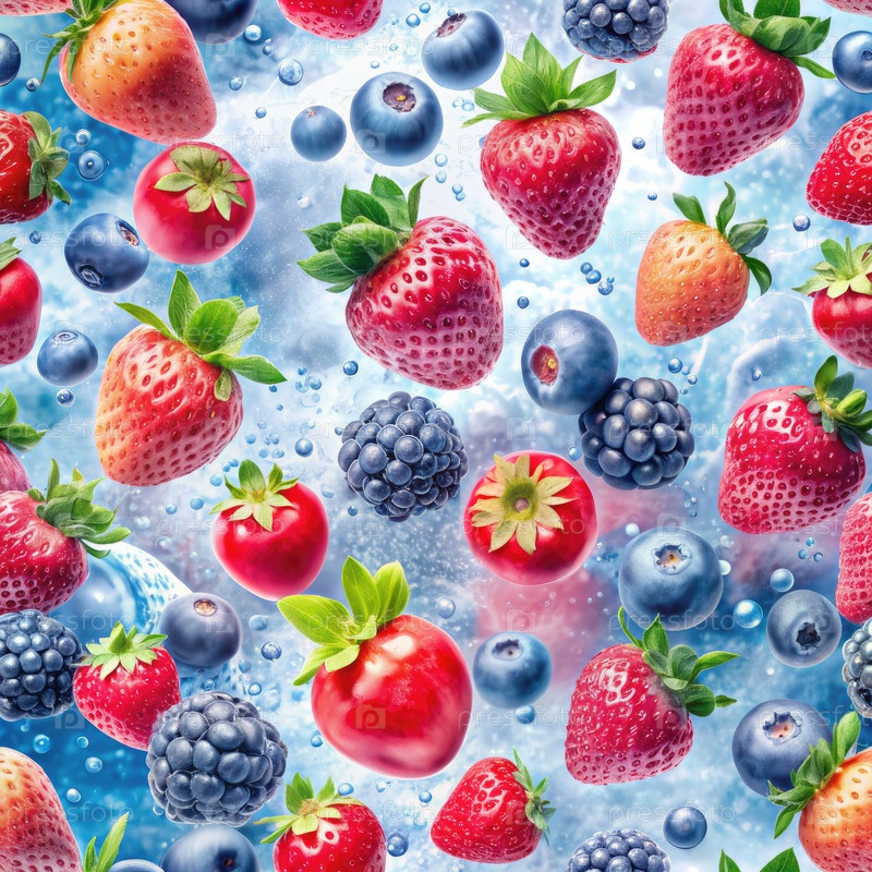 Vibrant Strawberry, Blueberry и Raspberry Wallpaper Pattern. Генерирующий ИИ