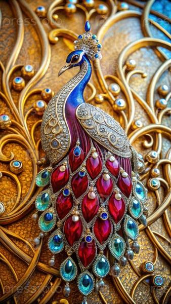 Красочный павлин Брук сидит на столе, генерируя ИИ