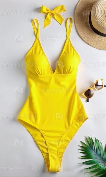 Стильный желтый купальник с луком, готов к летнему развлечению