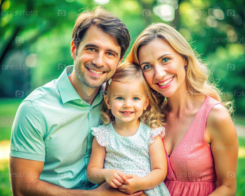 Семейный портрет в зеленом парке Эта фотография показывает счастливую семью из трех человек