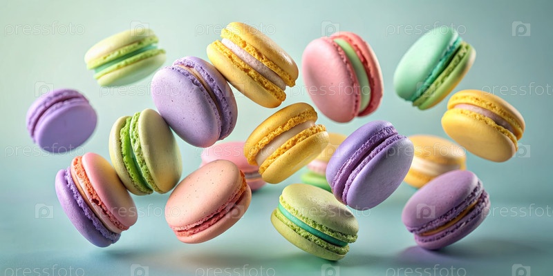 Красочные макароны плавают на мягком синем фоне, генерируя AI