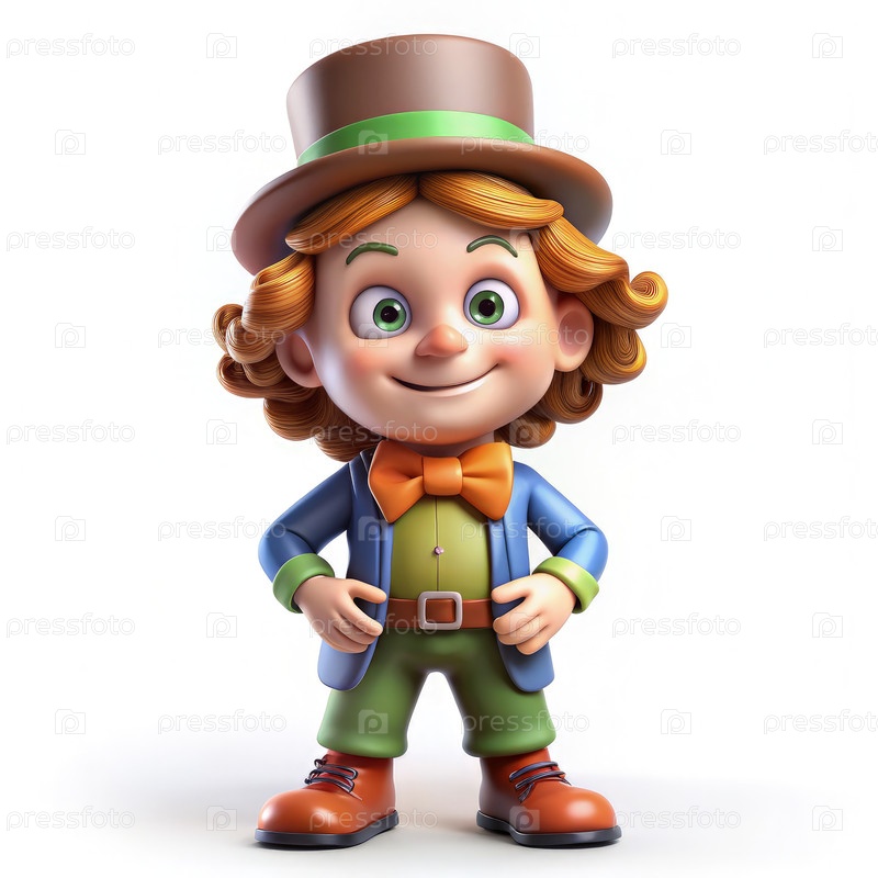Улыбающийся мальчик из мультфильма в верхней шляпе против белого фона Generating AI