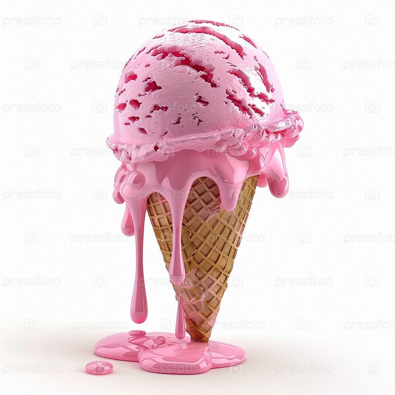 Расплавленное 3D мороженое в конусе вафли Сироп, крошки, карамель
