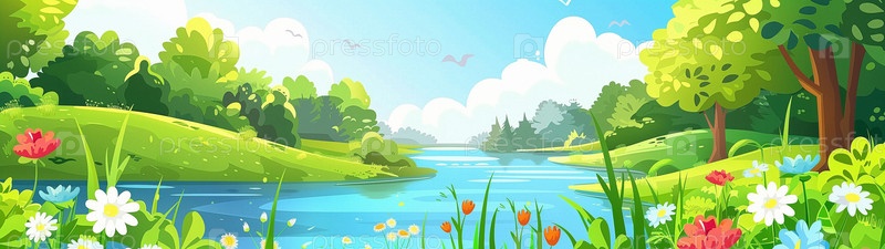 Широкоформатный фон с весенне-летним пейзажем.Пробуждение природы