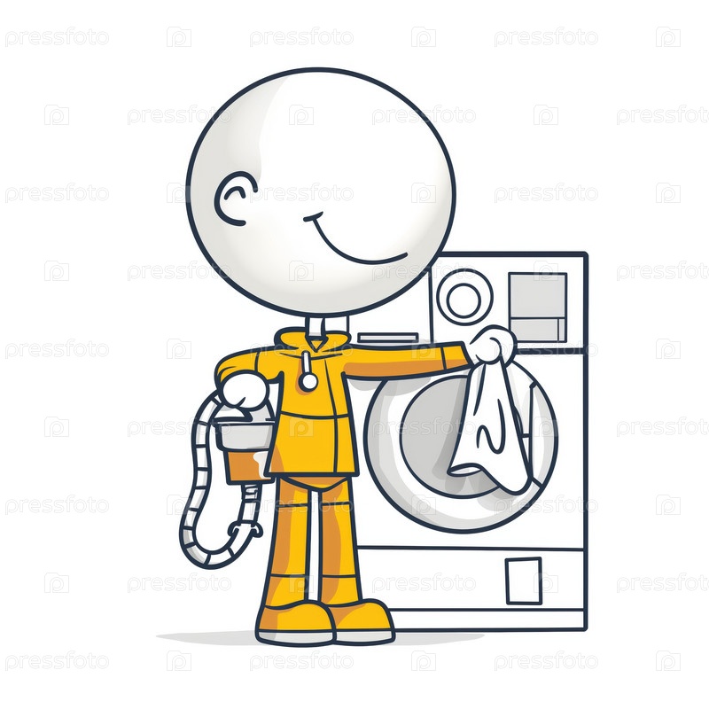 Stickman моет одежду в стиральной машине