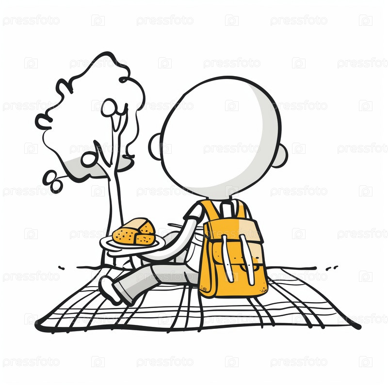 Стикмен устроил пикник на одеяле, изолированном от белого фона