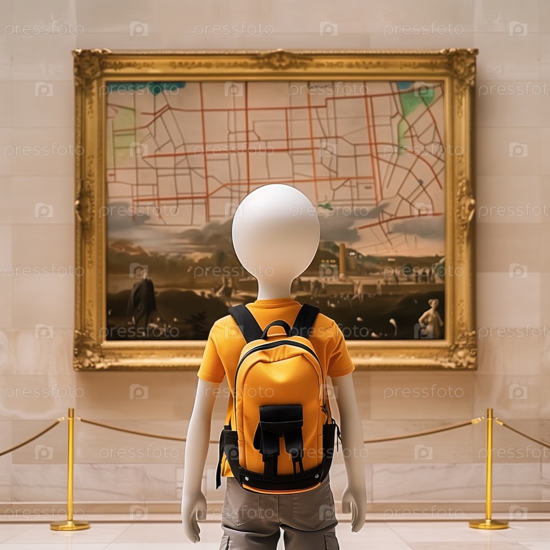 Стикмен смотрит на картину в музее, изолированную от белого фона