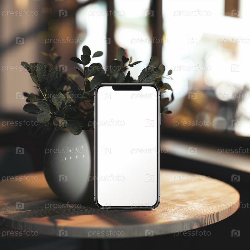 Смартфон с пустым экраном на размытом фоне