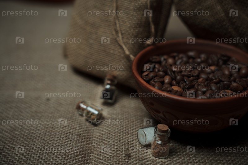 Кофейные бобы в глиняной кружке