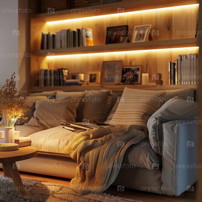 Уютная гостиная со скандинавскими элементами дизайна