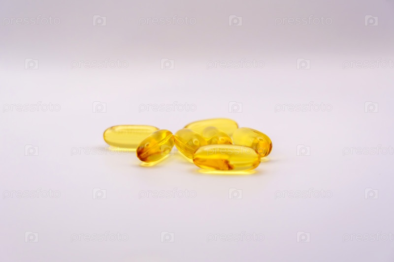 Мягкие капсулы Омега-3 на белом фоне