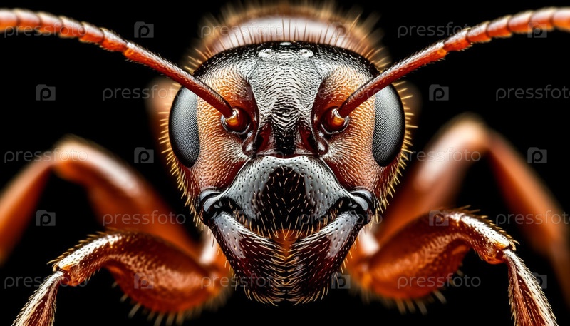 Гиперреалистическая муравьёвка Макро с черным фоном