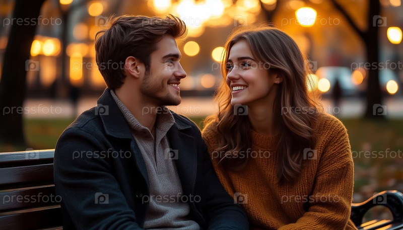 Романтическая пара улыбается друг другу в вечернем свете