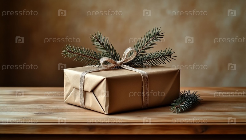 Рождественский подарок упакованный с Kraft на деревянном фоне