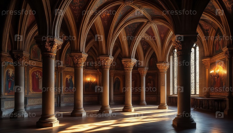 Готический зал с арками и колоннами