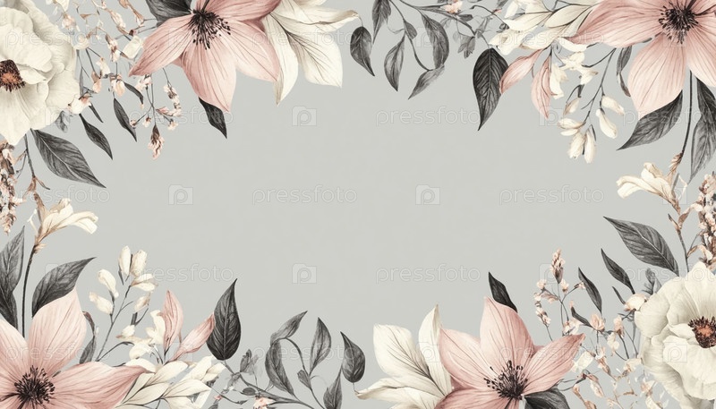 Бежево-серый фон с бледным ботаническим узором баннерный дизайн