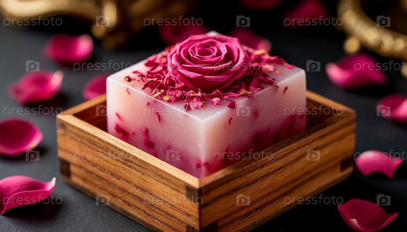 Естественное мыло с лепестками роз в дорогой деревянной коробке