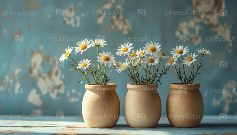 Рустические деревянные контейнеры и ромашки на Blue AI