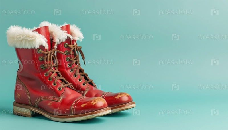 Уютные красные сапоги с меховым манжетом Copy Space AI Image