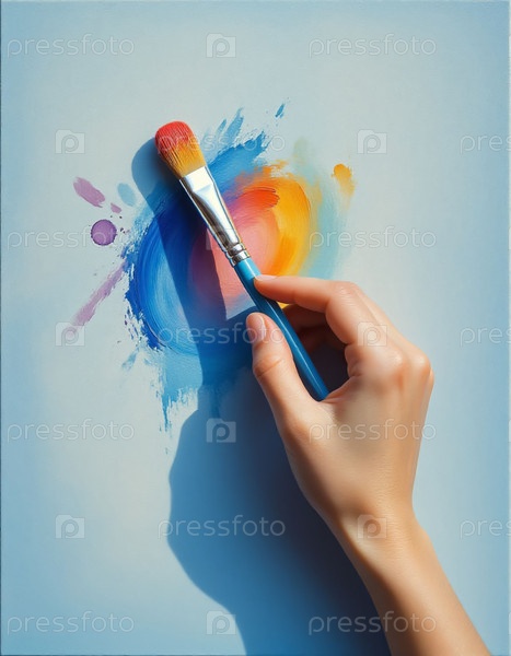Художник создает фреску с кистью в руке