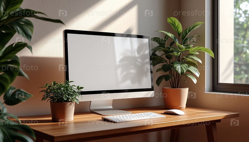 Пустой настольный дисплей в минималистическом рабочем пространстве