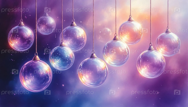 Деликатный новогодний декор с прозрачными шарами на лаванде