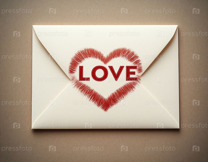 Поцелуй с помадой на Love Note Concept бумажном конверте