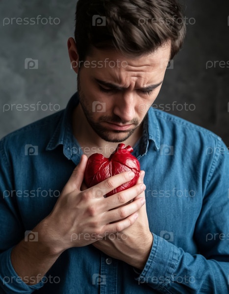 Печальный человек с эмоциональной болью в сердце