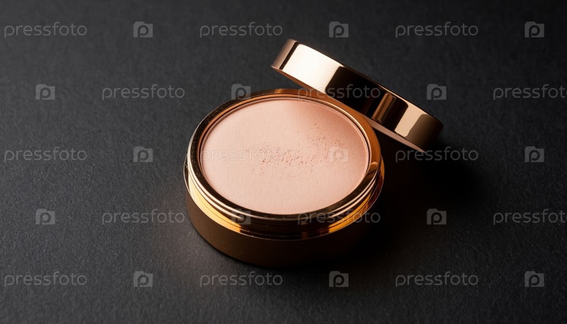 Косметический бежевый порошок на черном фоне
