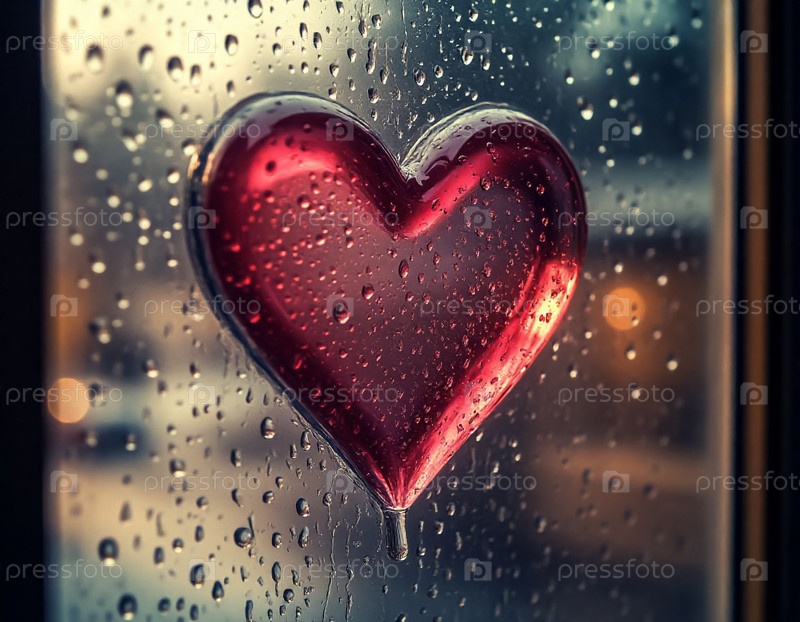 Дождливое окно с ручным рисунком сердца