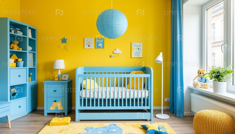 Детский сад в пастельных цветах желтого и синего