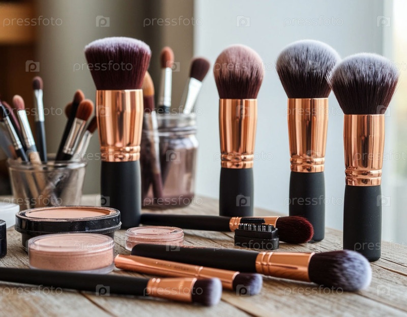 Набор косметических кистей на столе
