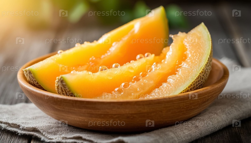 Куски спелой дыни в деревянной таре