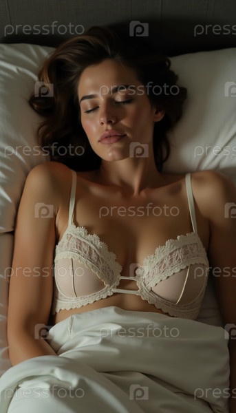 Потрясающая женщина в вкусном нижнем белье удобно лежит на плюшевой кровати, потерянная в глубоком сне.Ее расслабленное выражение излучает спокойствие в уютной и увлекательной среде генеративного ИИ