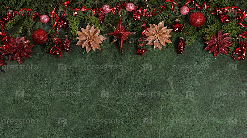 Праздничная зимняя поздравительная открытка и баннер на экране, красивый рождественский и новогодний фон с огнями, ювелирными изделиями, игрушками и живыми ветвями пихты, дизайн продукта для праздничной рекламы,