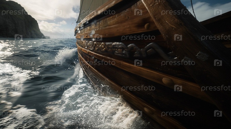 Корабль викингов в море - вид со стороны