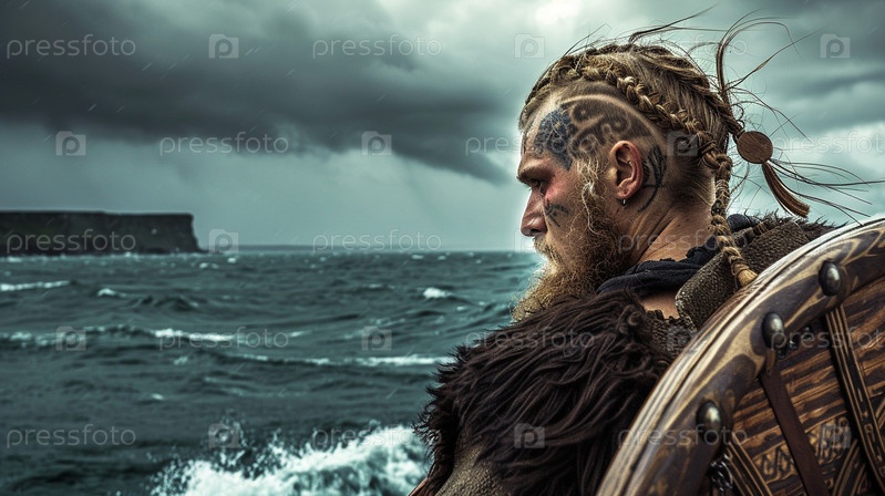 Воин-викинг на Северном море