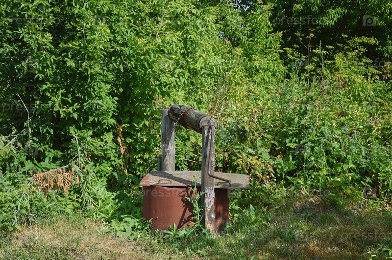 Старый заброшенный колодец в деревне.Россия