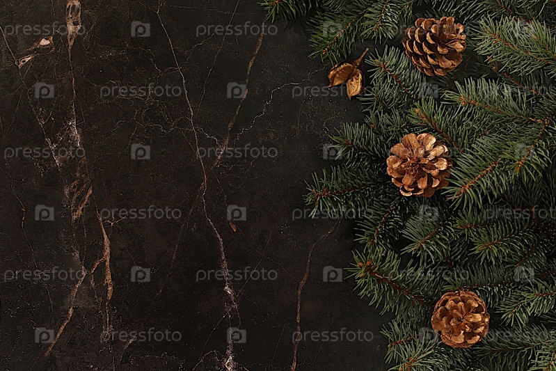 Праздничная зимняя открытка и баннер на экране, Красивый рождественский и новогодний фон с сосновыми конусами и живыми ветвями пихты, дизайн продукта для праздничной рекламы, концепция канун Рождества,