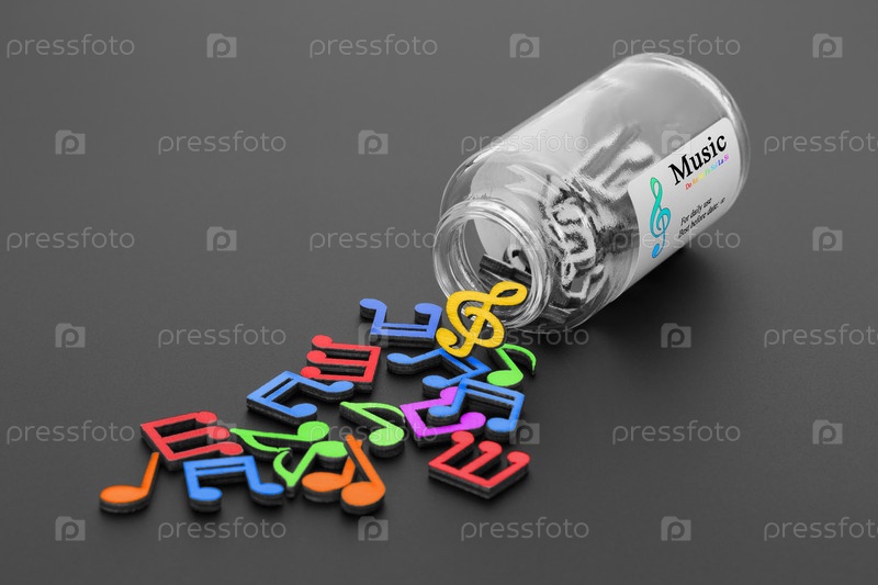 Музыкальные ноты выливались из бутылки с наркотиками