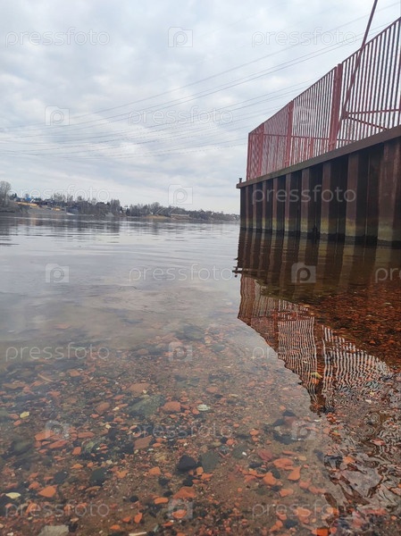 Спокойная река Нева с частью пирса