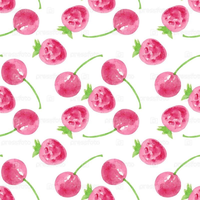 Бесшовный рисунок с вишней и ягод клубники на белом фоне. ручной акварель