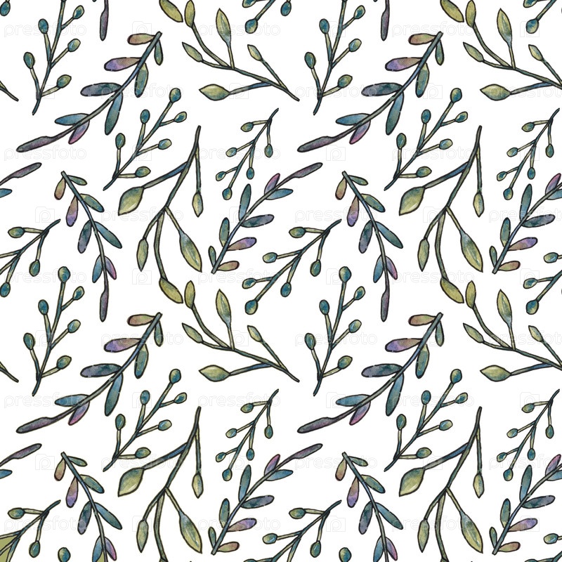 Бесшовный рисунок со стилизованными ветвями и листьями на белом фоне. Иллюстрация выполнена вручную акварелью. Вы можете разместить образцы на ткани, оберточной бумаге, обоях и использовать для покрытий