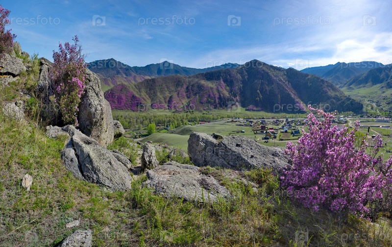 Юг Западной Сибири. Цветение мараллоха (рододендрона) на скалах Алтайских гор - это грандиозный весенний праздник, куда склонны приезжать туристы со всей России