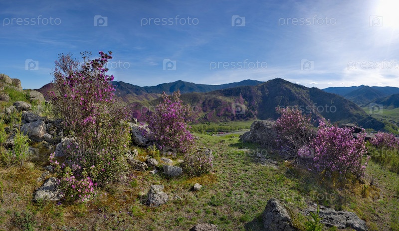 Юг Западной Сибири. Цветение мараллоха (рододендрона) на скалах Алтайских гор - это грандиозный весенний праздник, куда склонны приезжать туристы со всей России