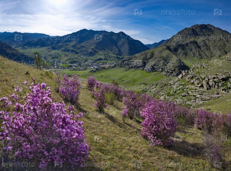 Юг Западной Сибири. Цветение мараллоха (рододендрона) на скалах Алтайских гор - это грандиозный весенний праздник, куда склонны приезжать туристы со всей России
